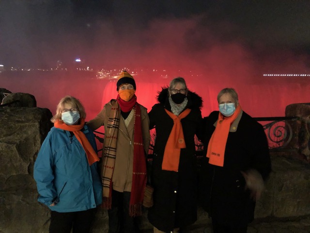 The Zonta Clubs of Owen Sound, Stratford, Woodstock, Kitchener-Waterloo, Guelph, Hamilton 1, Mississauga, Brampton-Caledon, Central York, Oakville, Toronto, St. Catharines, Niagara Falls, ON, and Cross Border (Canada-USA). Delegate representative Nita McCown (ZC Toronto).